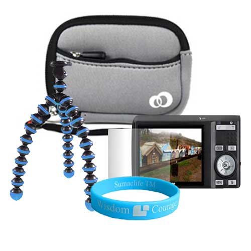 Gray Mini Glove Carrying Case for Fuji FinePix J20 F200EXR F100fd Z30 J250W JV100 + Screen Protector + Tripod + Wisdom * Courage Wristband Overview